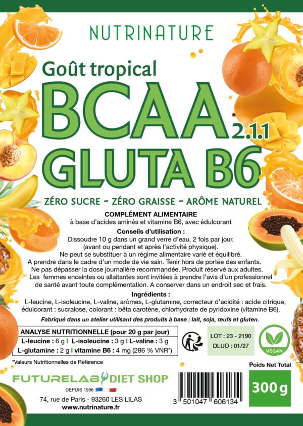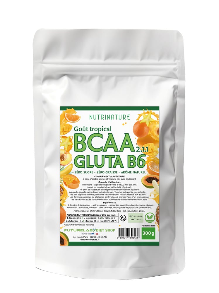La synergie de ces 4 acides aminés (BCAA + Glutamine) seront des alliés de choix au moment d’une pratique sportive pour de meilleurs résultats. La Vitamine B6 renforce leurs actions..