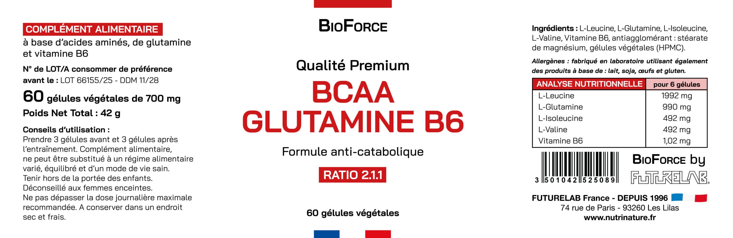 BCAA GLUTA B6 60 ou 170 gélules végétales