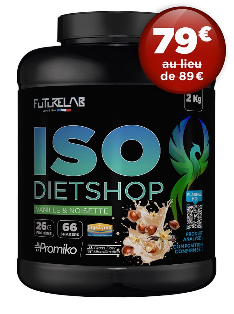 - Construction musculaire : l’ISO DIETSHOP PROMIKO® est un ingrédient clé dans la construction musculaire, car elle fournit les acides aminés nécessaires à la synthèse protéique.