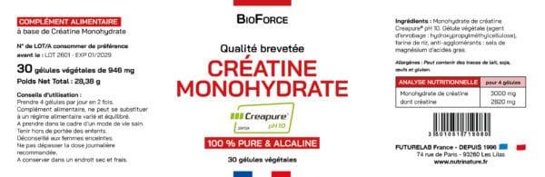 La KREATEX de FUTURELAB est une créatine brevetée de dernière génération.